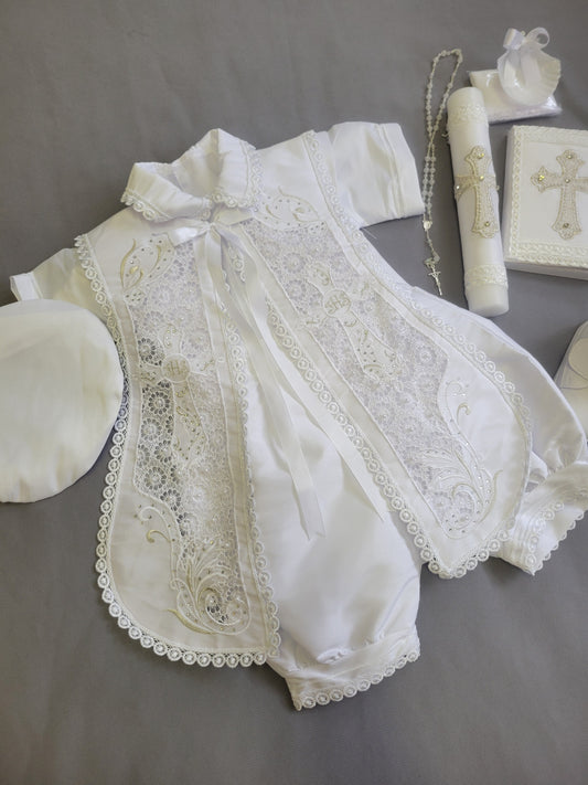 Ropon de Bautizo de Niño, Boy Christening Outfit, candle set.