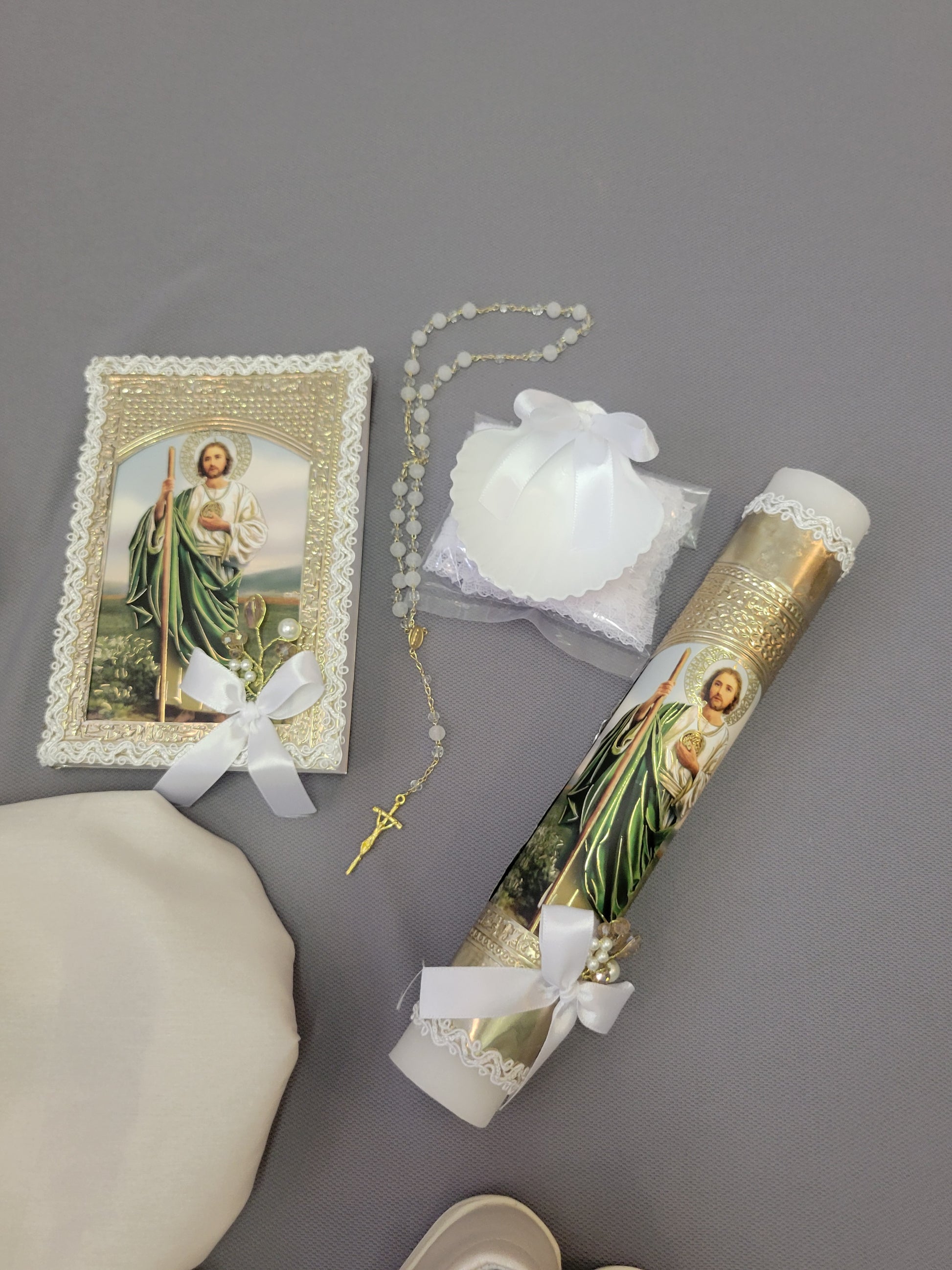 Paquete de Bautizo de Niño, Boy Christening Outfit, candle set. San Judas, Saint jude
