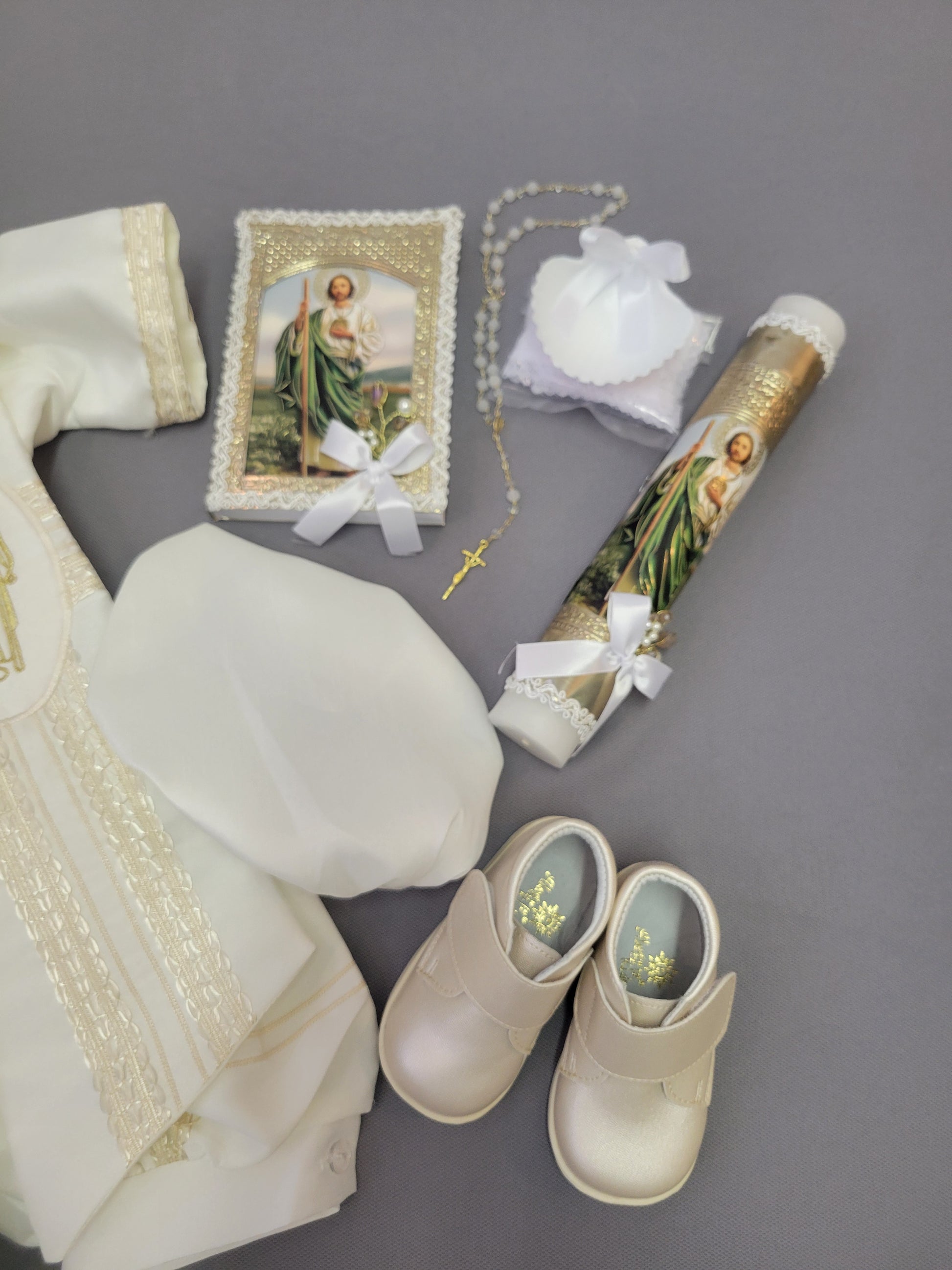Paquete de Bautizo de Niño, Boy Christening Outfit, candle set. San Judas, Saint jude