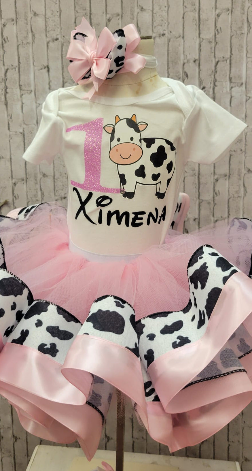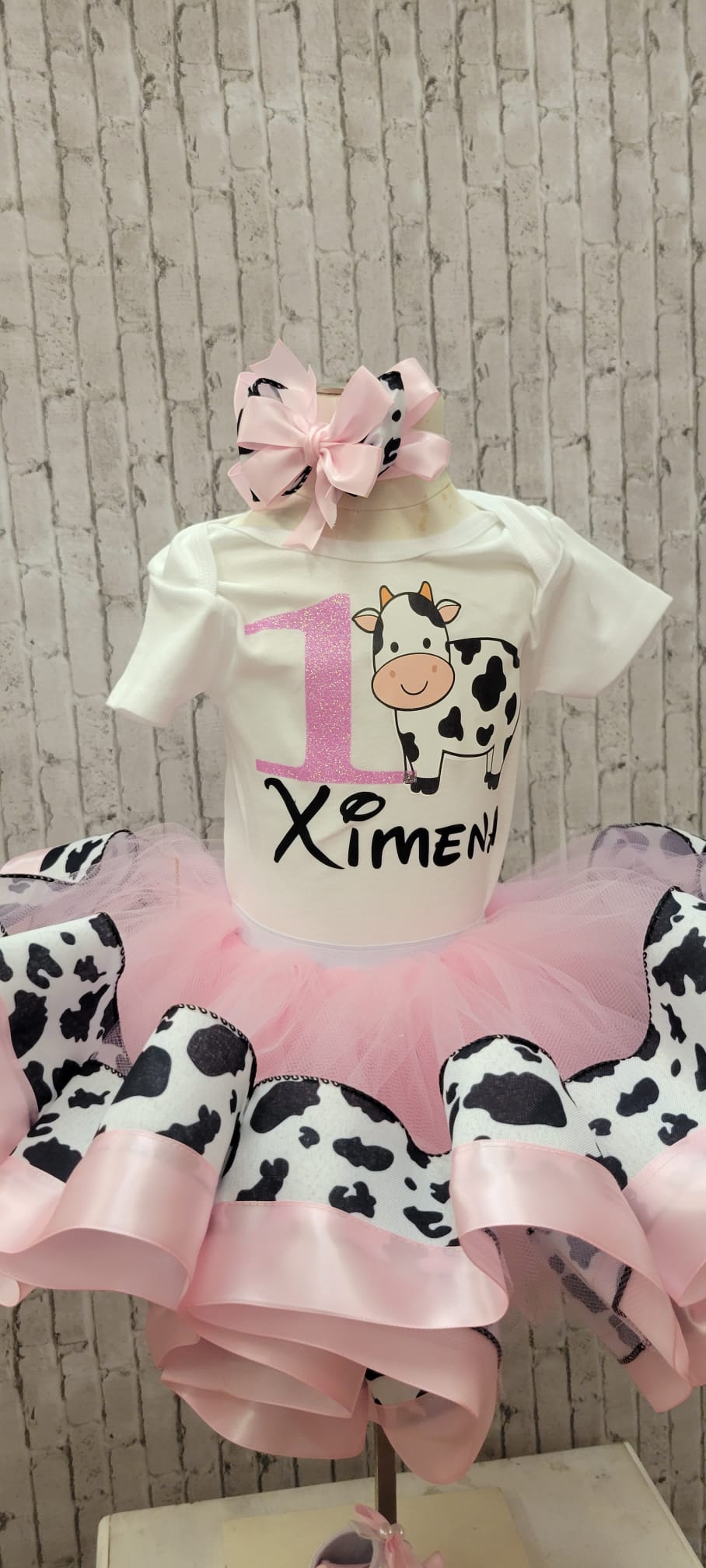 Cow Birthday Tutu Outfit, Vaca Lola set de Cumpleanos