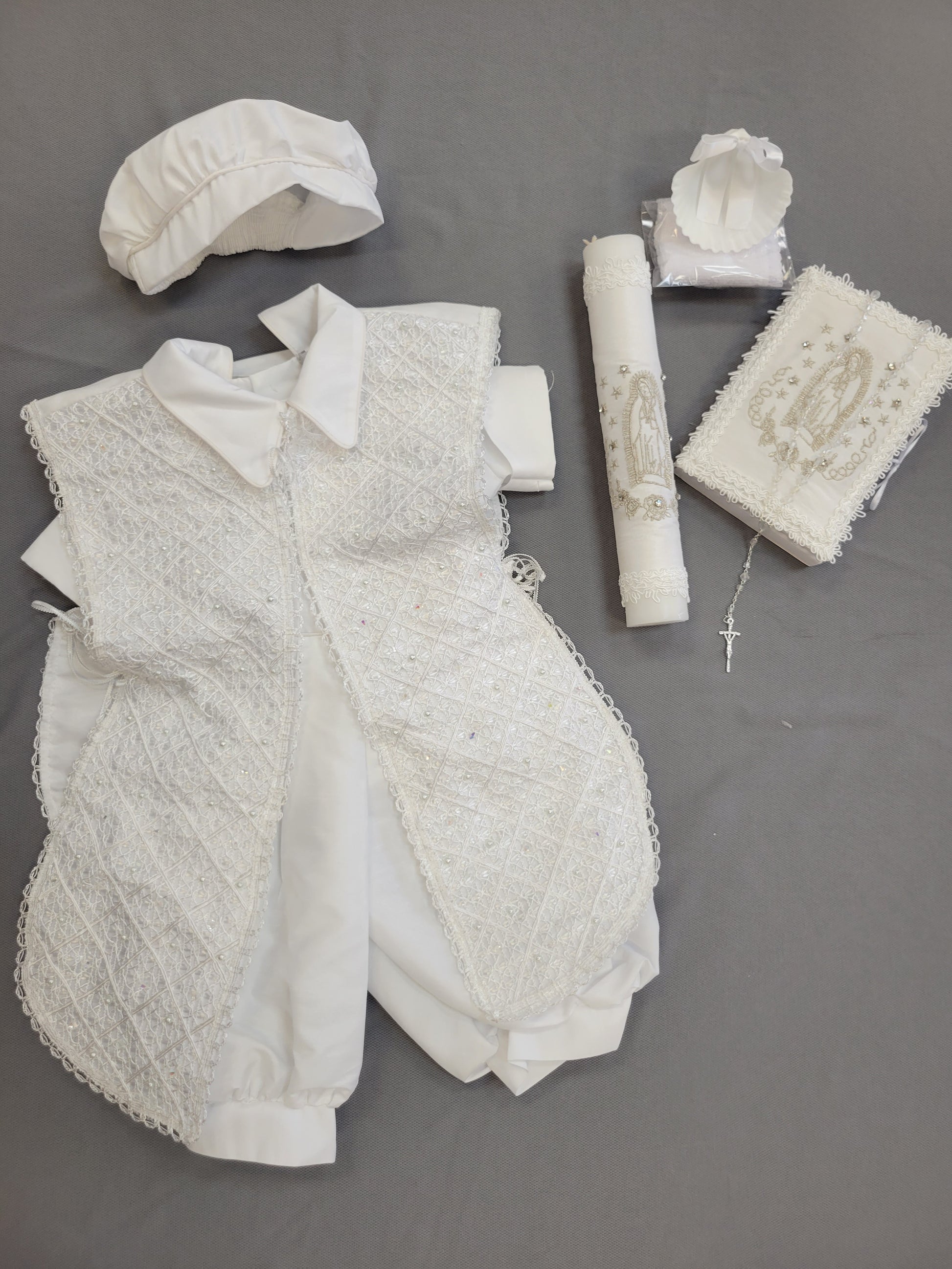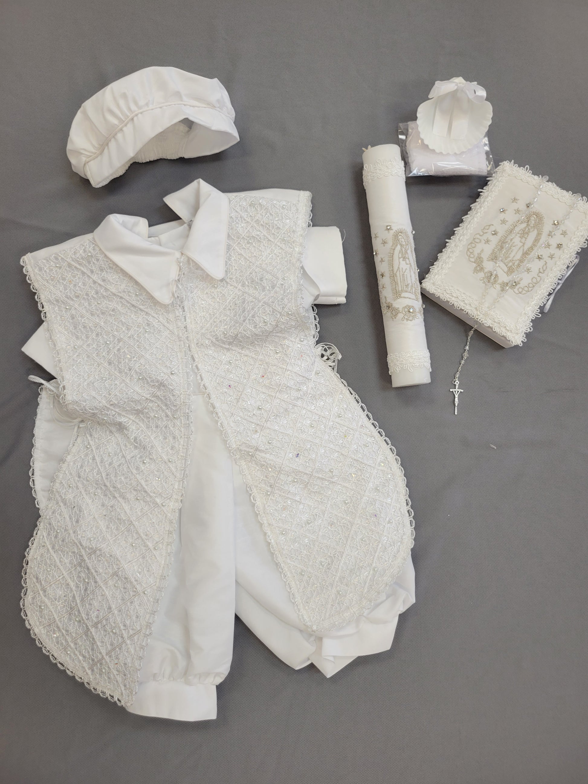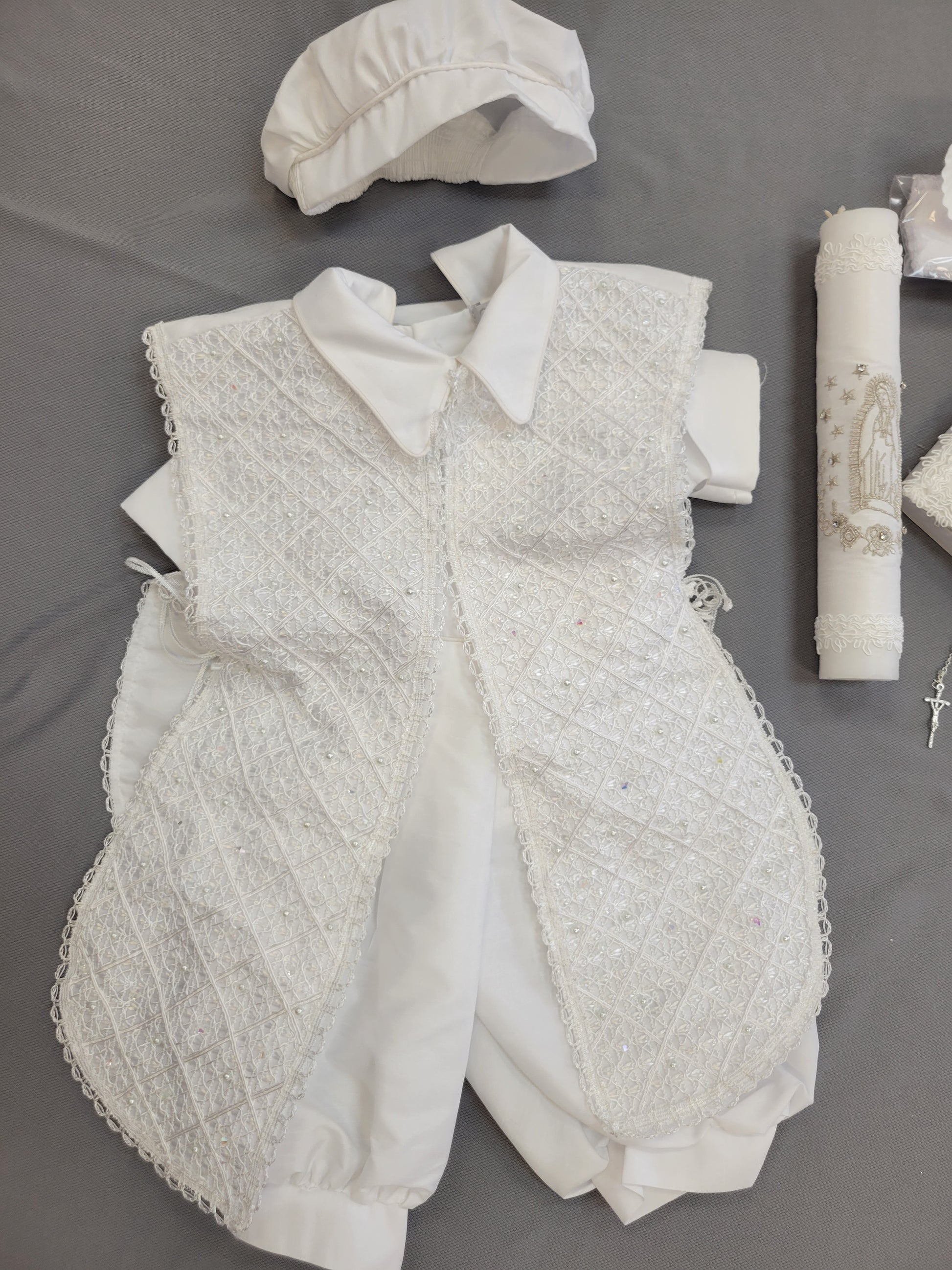 Ropon de Bautizo de Niño, Boy Christening Outfit, candle set.