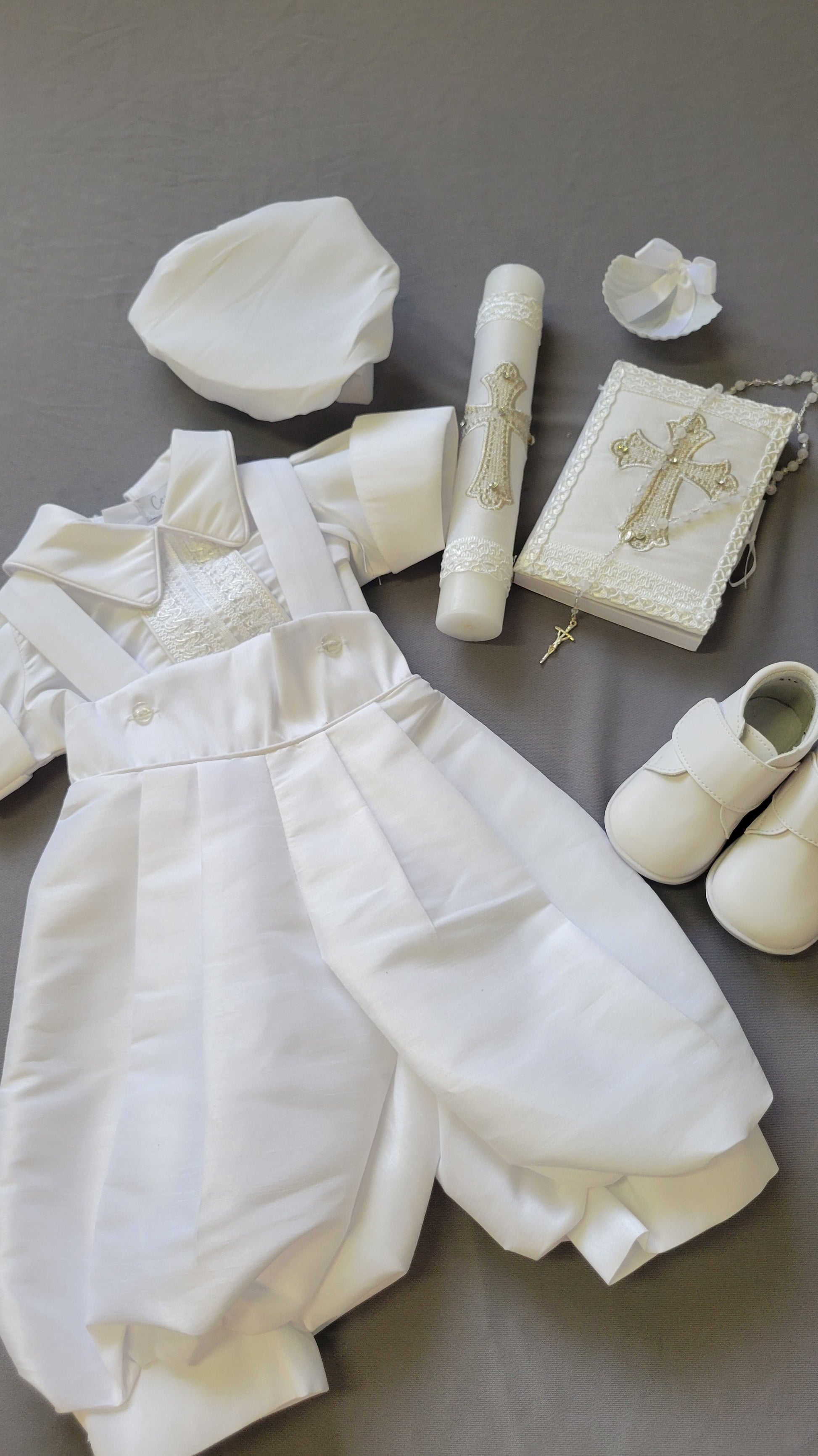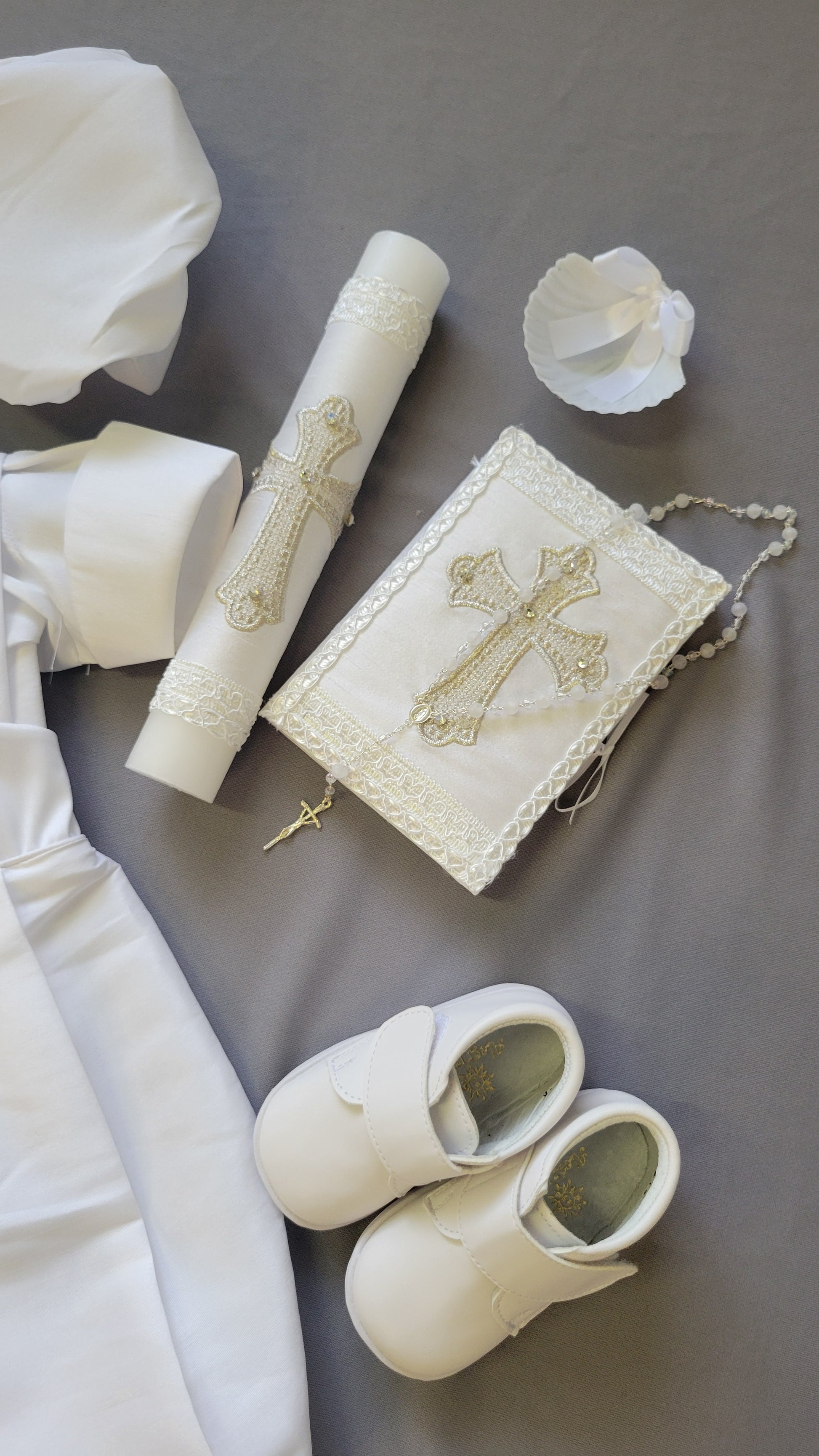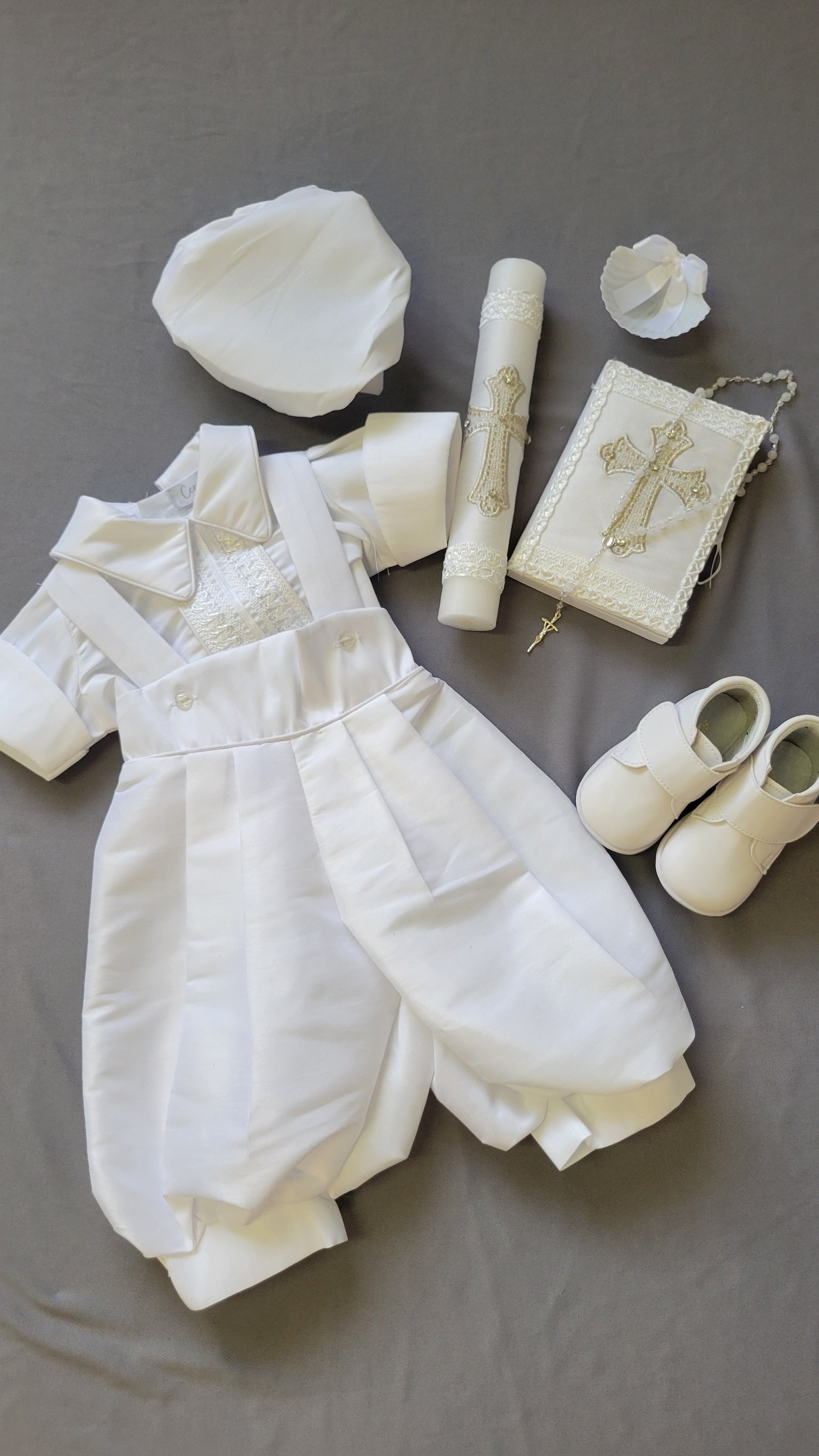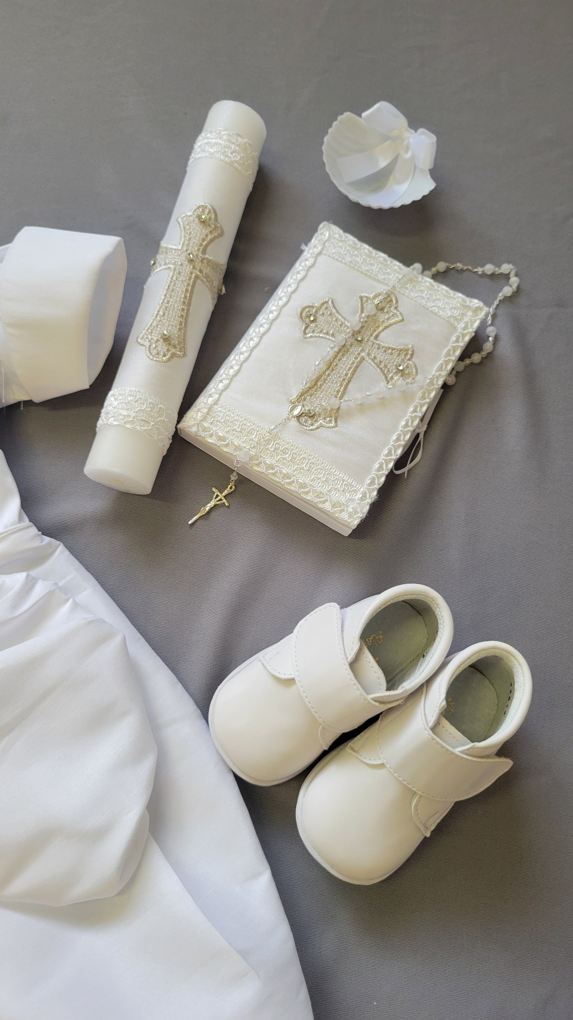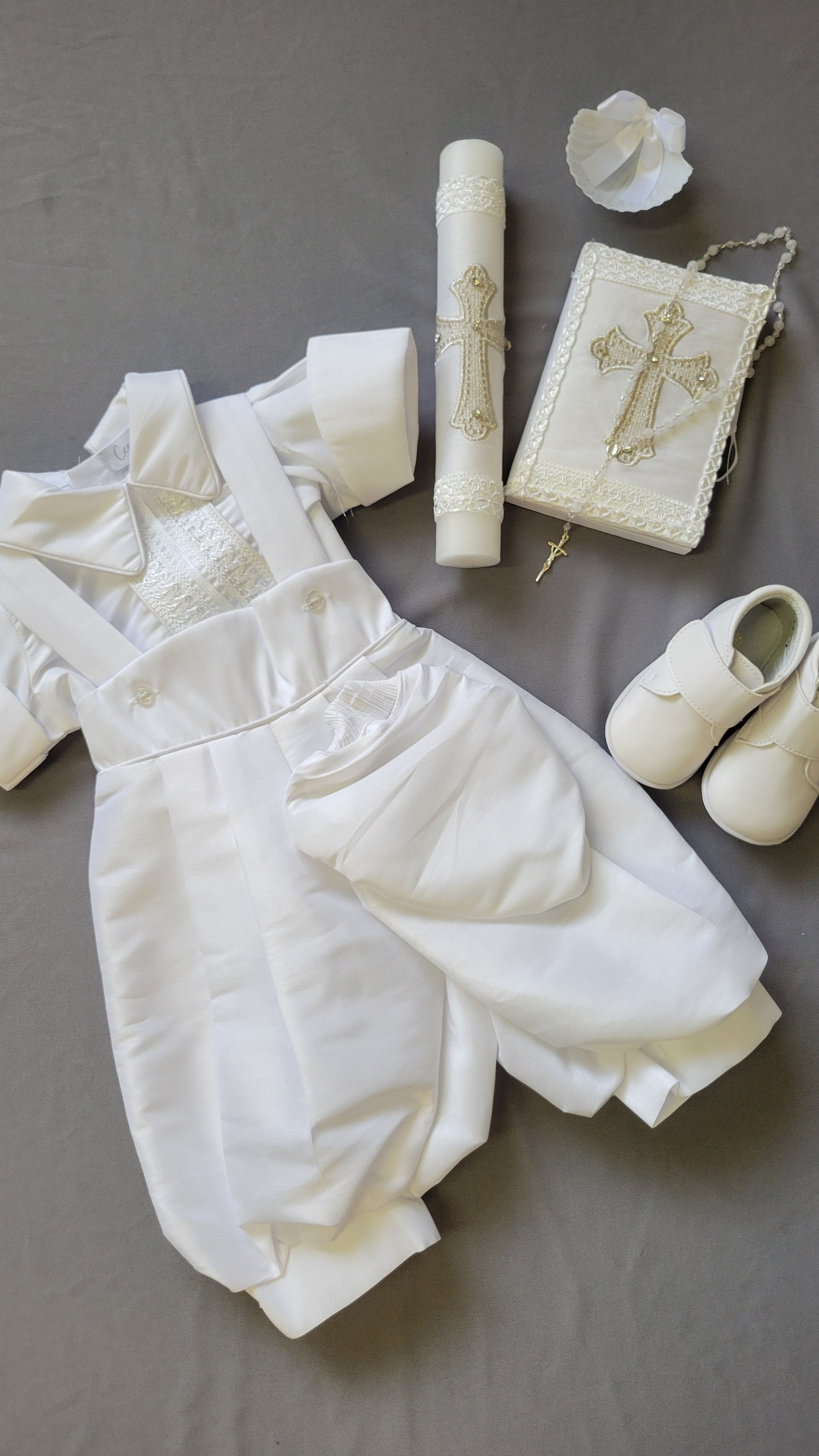 Ropon de Bautizo de Niño, Boy Christening Outfit, candle set. Cruz