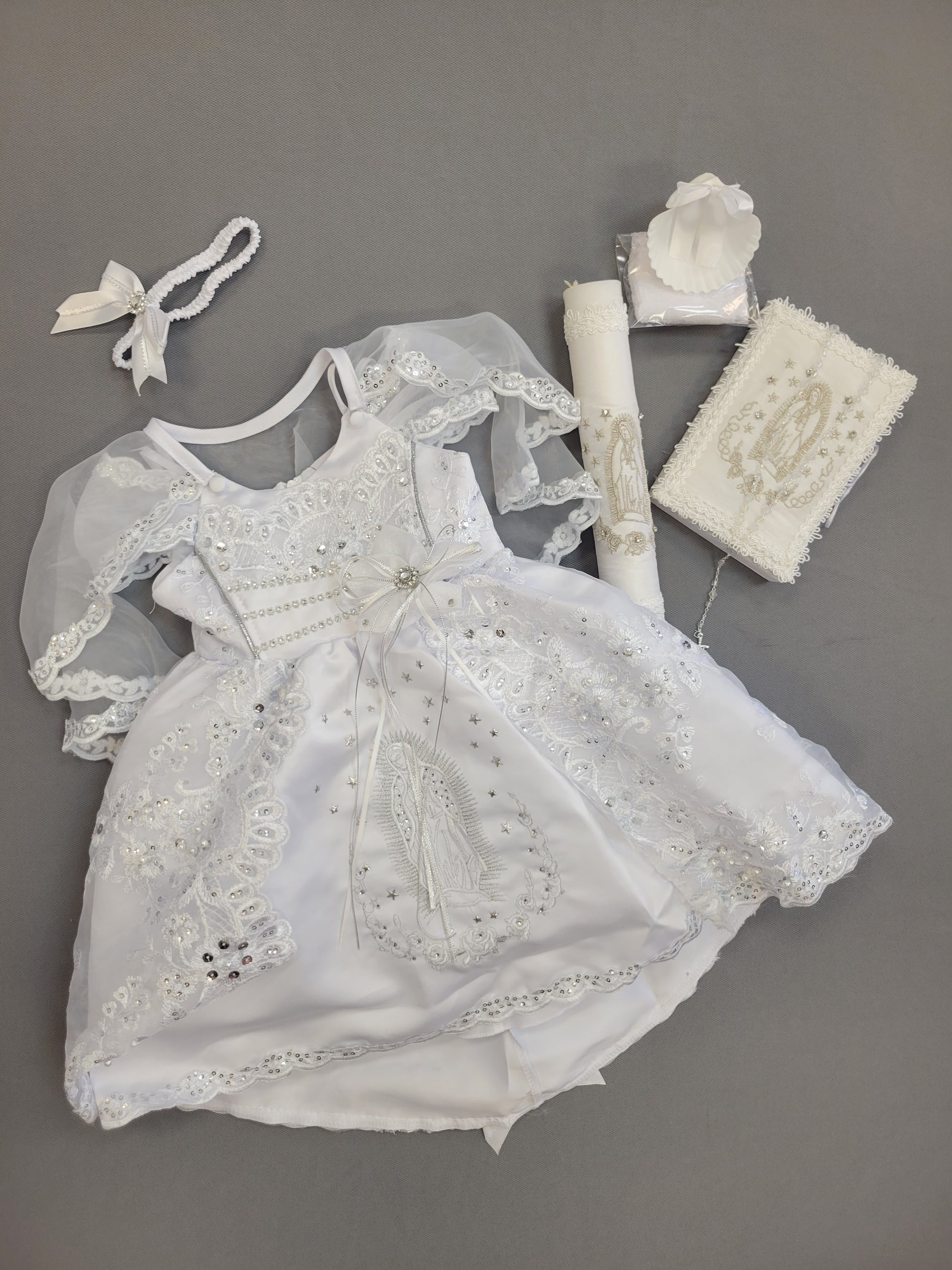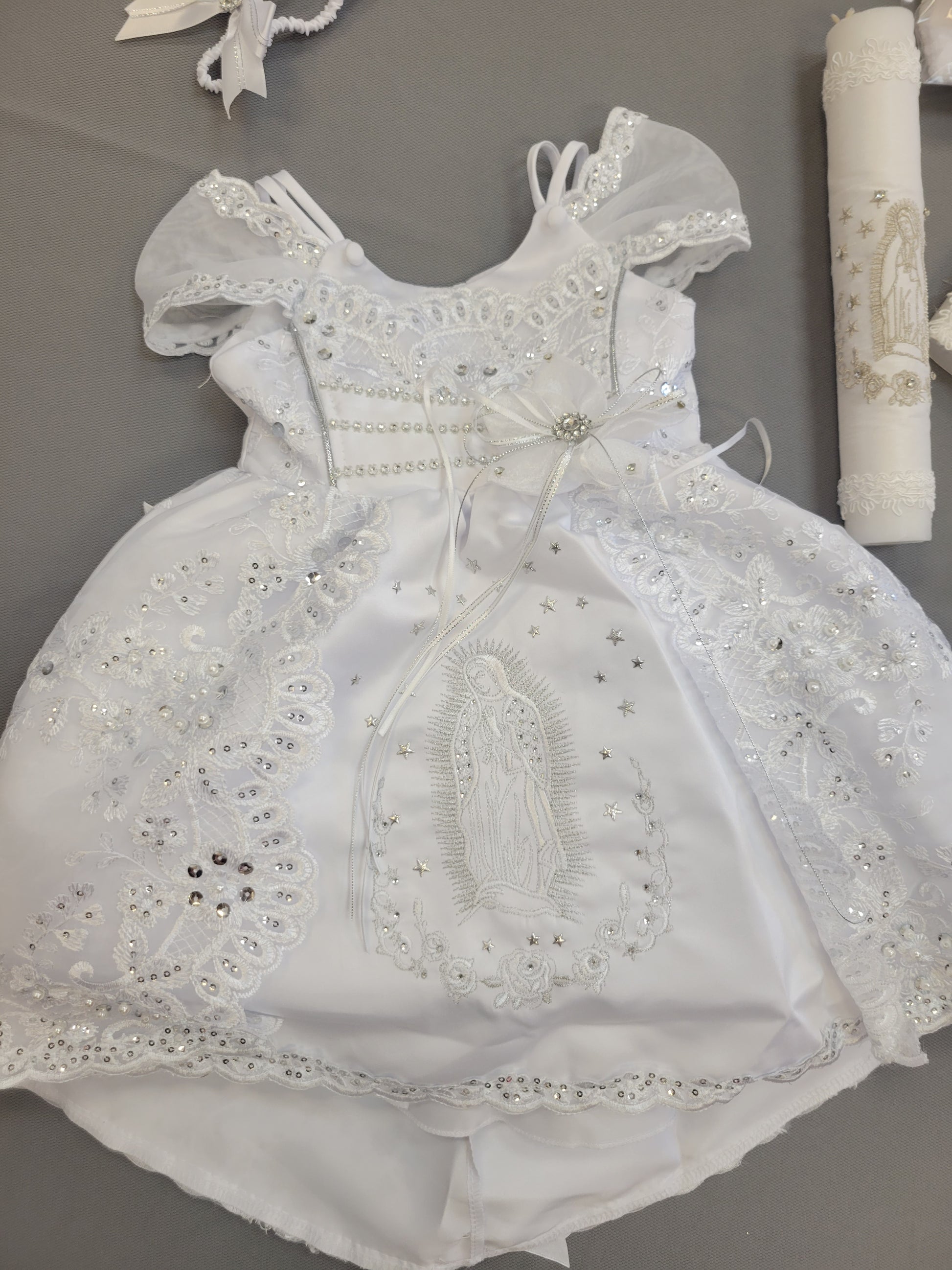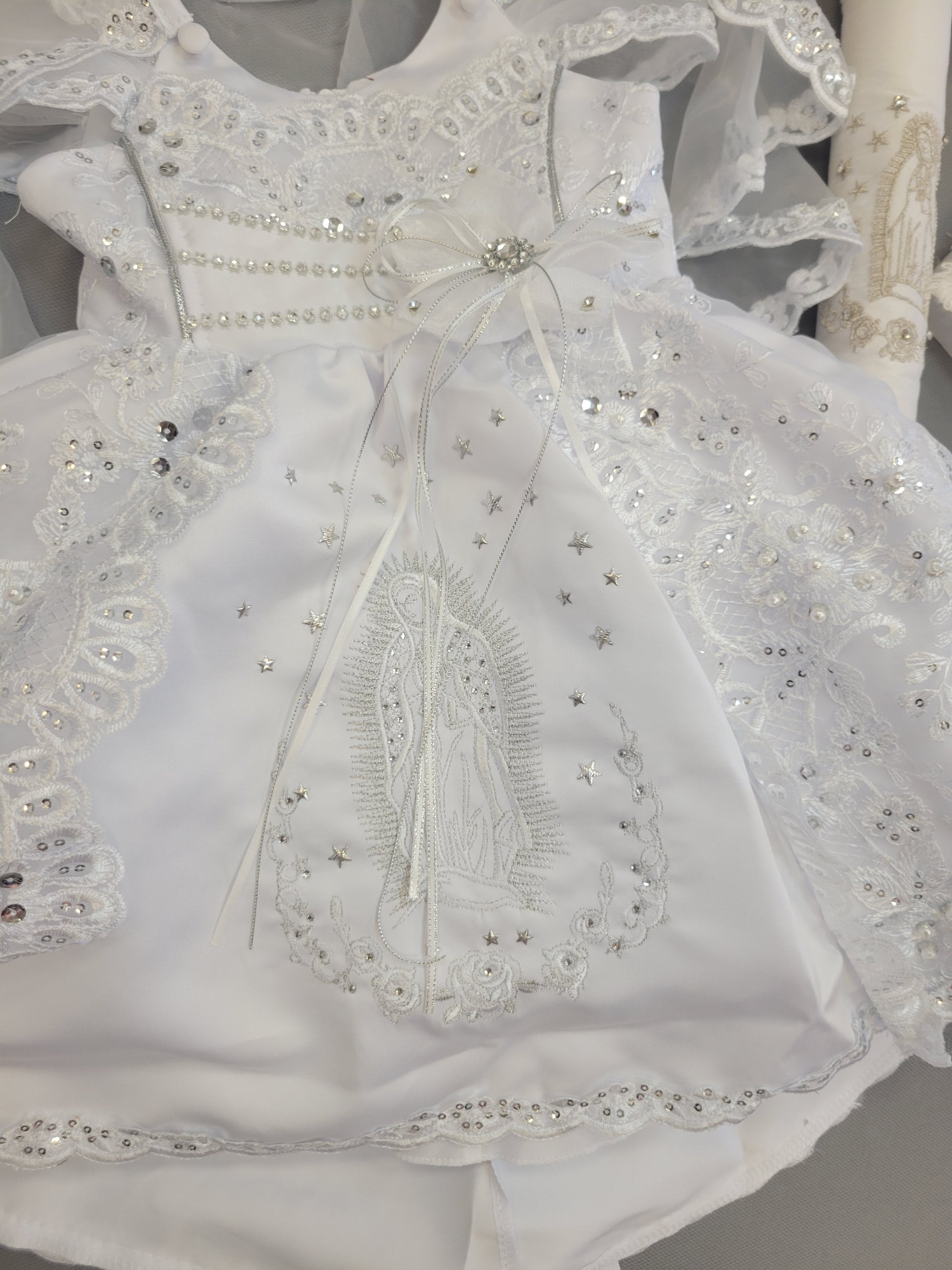 Virgen de Guadalupe Baptism Dress | Baby Girl White Christening Gown | Vestido Bautizo con Virgen