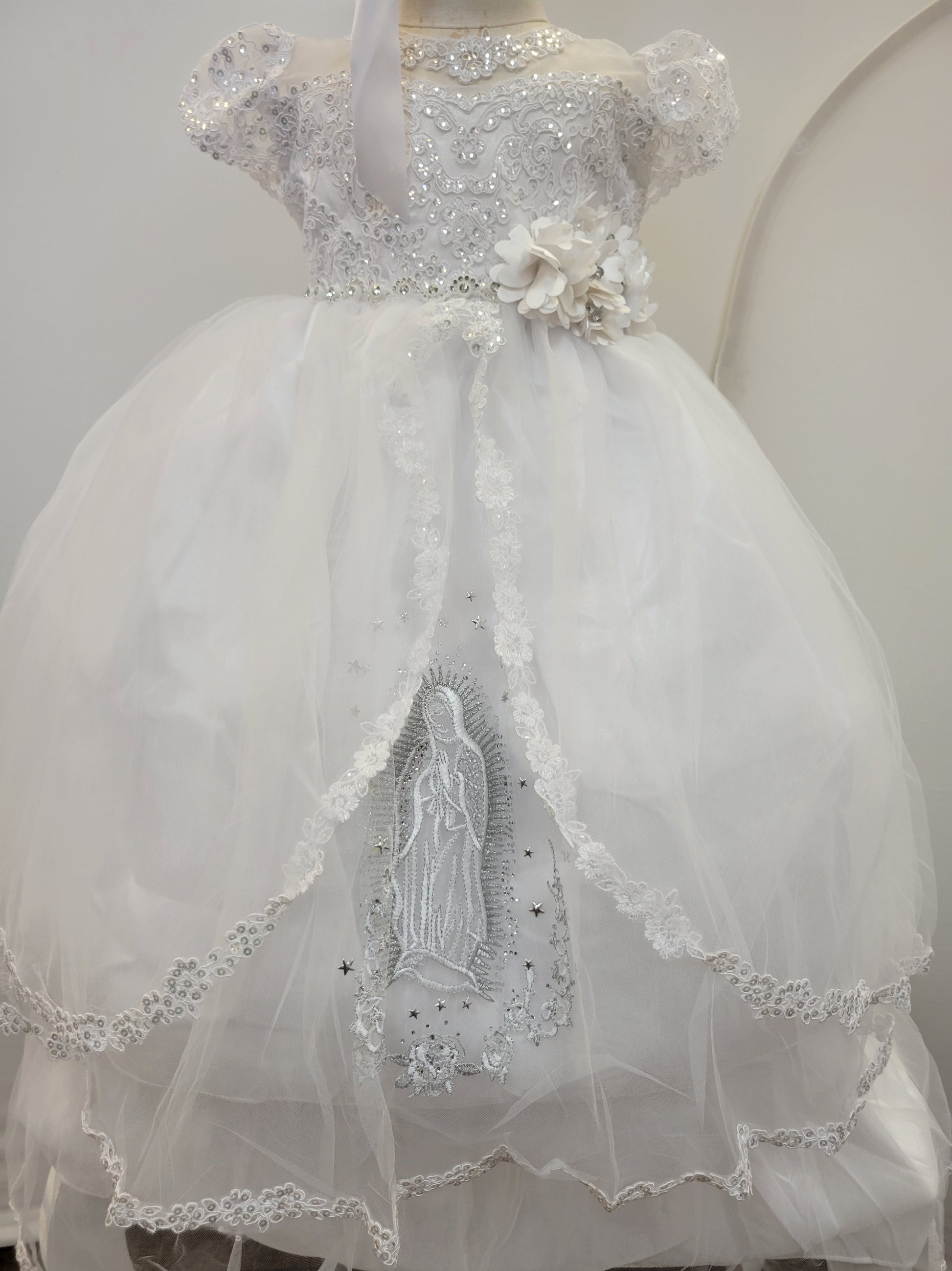 Virgen de Guadalupe Baptism Dress | Baby Girl White Christening Gown | Vestido Bautizo con Virgen